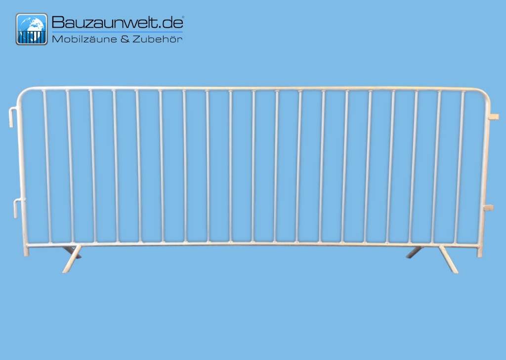 Unsere Absperrgitter bestehen aus verzinktem Stahl und werden durch Haken und Ösen miteinander verbunden.