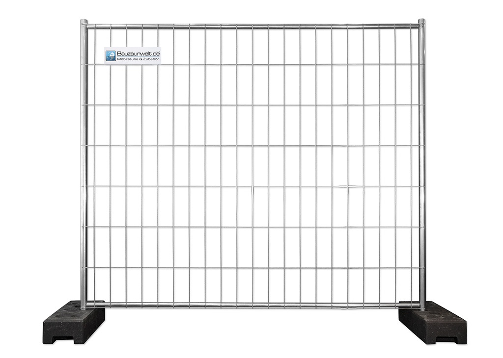 Set mit Bauzäunen in kurzer Bauweise, für platzsparenden Transport und somit günstigeren Versand - Wahlweise mit mit PE Fuß 16 kg - Betonfuß 23 kg - K1 Fußplatte & Multitransportpalette MTP15 inkl. Verbinder