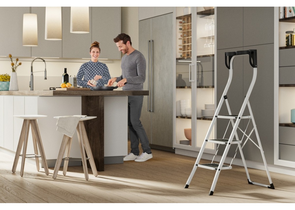 Ergonomische Stahl-Trittleiter mit praktischer Ablageschale