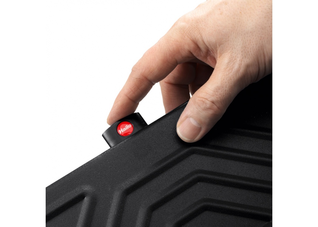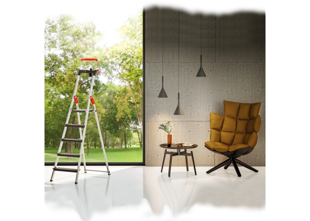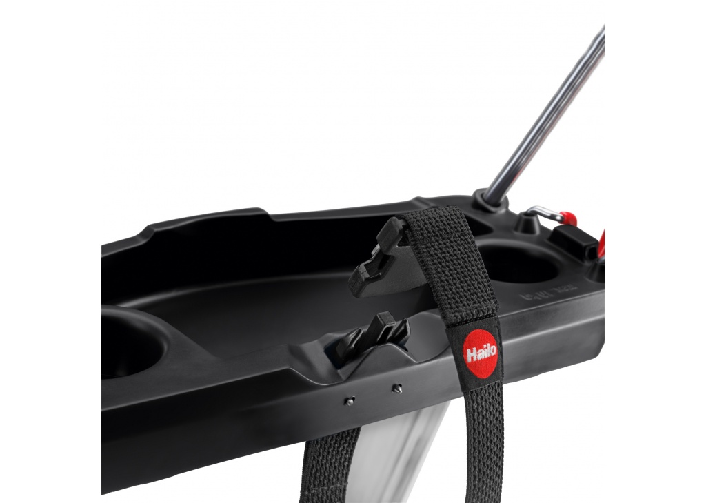 Die Alu-Sicherheits-Stehleiter mit Multifunktions- Schale, Sicherheits-Haltebügel und Plattformverriegelung bietet Sicherheit im XXL Format: 130 mm extra tiefe Stufen. Geeignet für Hailo EasyClix Wechselfüße (optionales Zubehör) Plattformverriegelung für sicheres Ver- und Entriegeln Schwarze XXL-Alu-Stufen mit Anti-Rutsch- Riffelung und extra tiefer Standfläche Verzinkte, schwarze Stahl-Plattform mit Anti- Rutsch-Riffelung Ausziehbarer Sicherheits-Haltebügel zum Festhalten beim Arbeiten auf der Plattform Multifunktions-Ablageschale zur Ablage von Werkzeugen, Farbdosen oder Kleinteilen Eimerschlaufe mit Klick-Schnellverschluss zur sicheren Befestigung von Eimern, Staubsaugern oder Kabeltrommeln 2 Universalhaken als Halterung für Heckenscheren, Putzmittel oder Malerrollen 1 Stabhalter als Halterung für Besen oder Pflücker Sichere, HighTech-vernietete Holm-Stufenverbindung Stufe zusätzlich mit Eckaussteifungen versehen Rutschsicherer Steckfuß Belastbar bis 150 kg