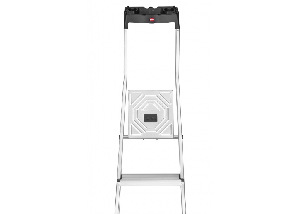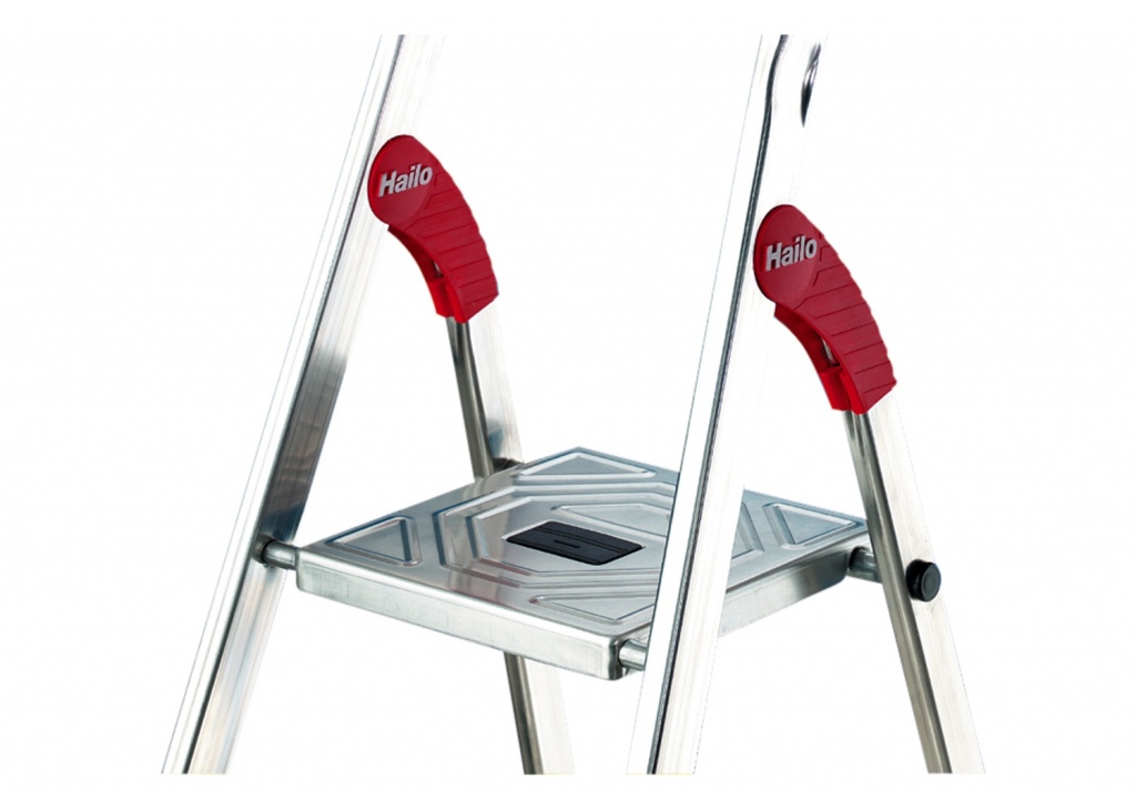 Hailo L60 - Aluminium-Sicherheits-Haushaltsleiter ist Allzeit griffbereit mit Multifunktions-Schale und Gelenkschutz. Oben auf dem Sicherheitsbügel dieser Leiter ist eine Arbeitsschale befestigt. Darin können Sie Werkzeug und Putzmittel griffbereit ablegen. Oder wollen Sie Löcher in die Decke bohren? Mit der integrierten Kabelführung in der Arbeitsschale geht das ganz einfach und ohne Kabelsalat. Und wenn Sie die Decke streichen wollen, hängen Sie den Farbeimer einfach am integrierten Haken auf. Die praktische Alu-Sicherheits-Haushaltsleiter mit Multifunktions-Schale und Gelenkschutz Geeignet für Hailo EasyClix Wechselfüße (optionales Zubehör)
