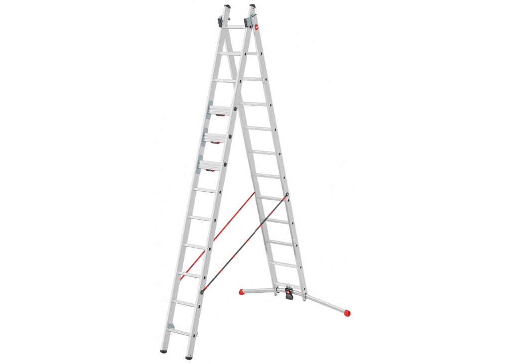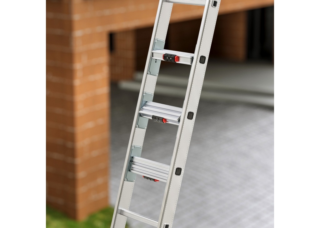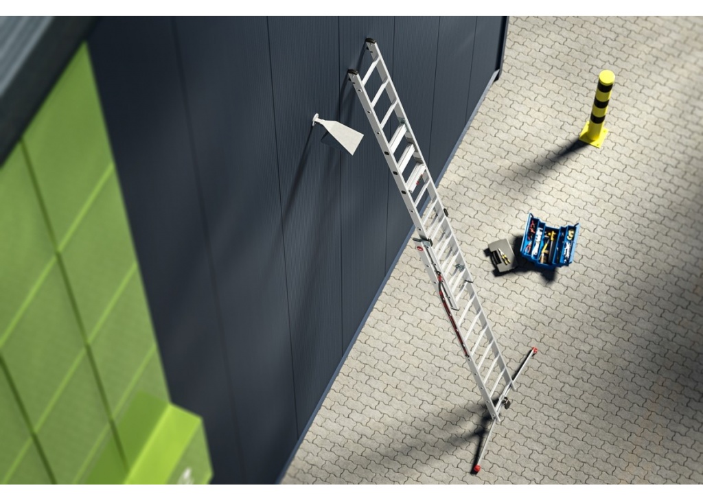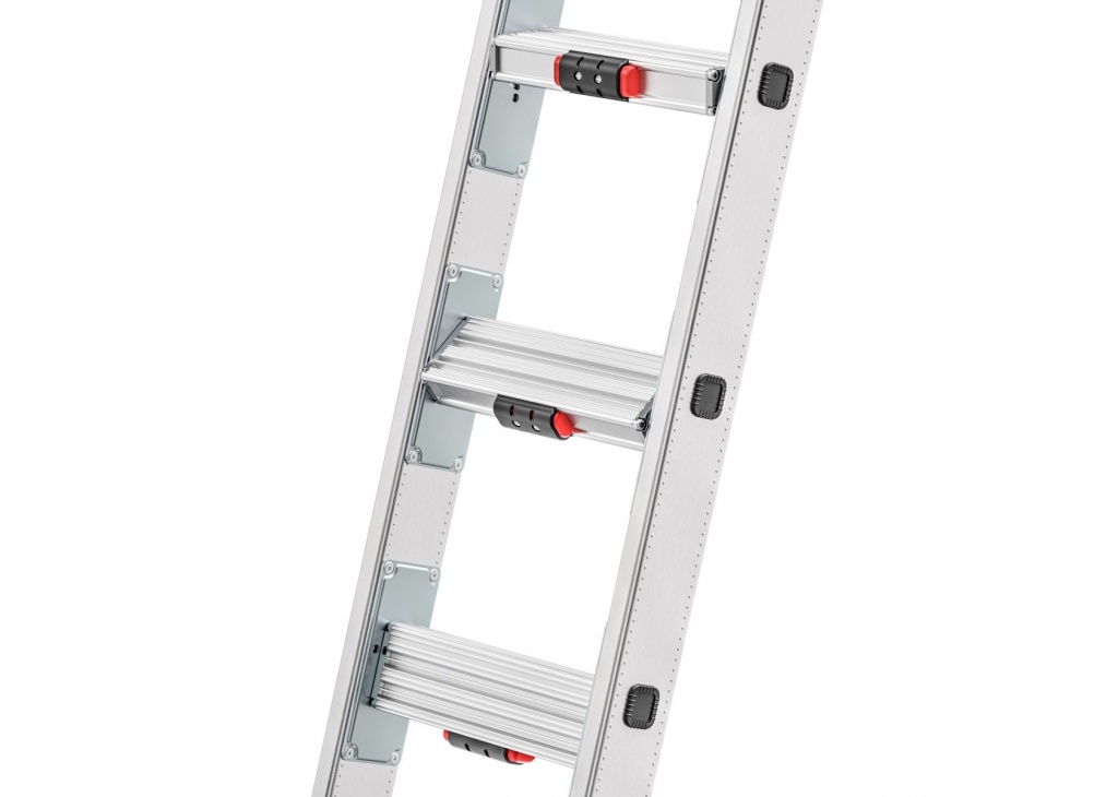 Hailo Sprossenschiebeleiter S110 Pro mit innovativen 3 Dreh-Stufen mit großer Standfläche 2x12 Sprossen