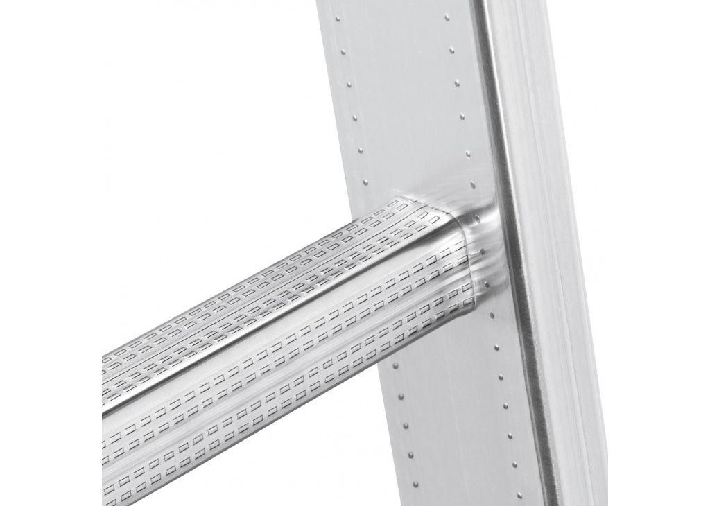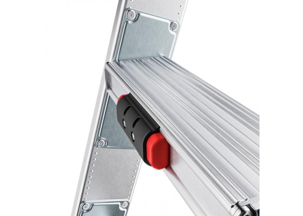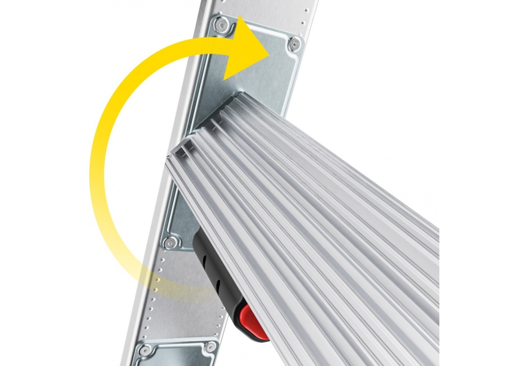 INNOVATION: 3 Dreh-Stufen mit großer Standfläche und mit Einhand-Sicherheits-Verriegelung schaffen einen sicheren und ergonomischen Arbeitsplatz auf der Leiter (siehe TRBS 2121-2) LOT-System: gleicht Bodenunebenheiten bis 15 cm aus, Einstellung per Fußpedal Vielseitig verwendbar als Anlege-, Schiebe- und Bockleiter bei 3x12 Leiter (Artikel-Nr. 9001-007).